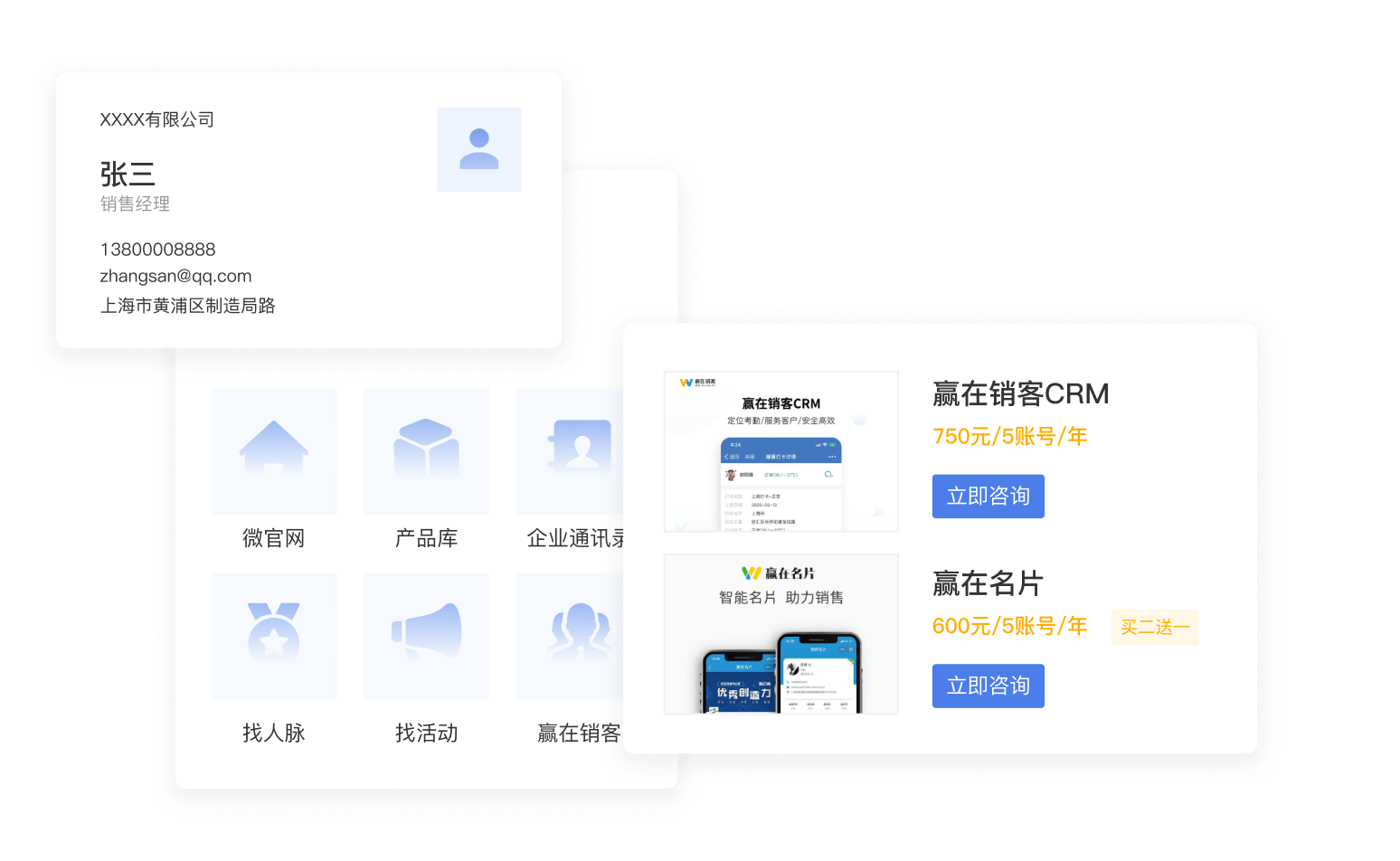 赢在名片小程序打通赢在销客CRM,新增名片客户可导入CRM进行后续跟进,从拓客到管理无缝衔接