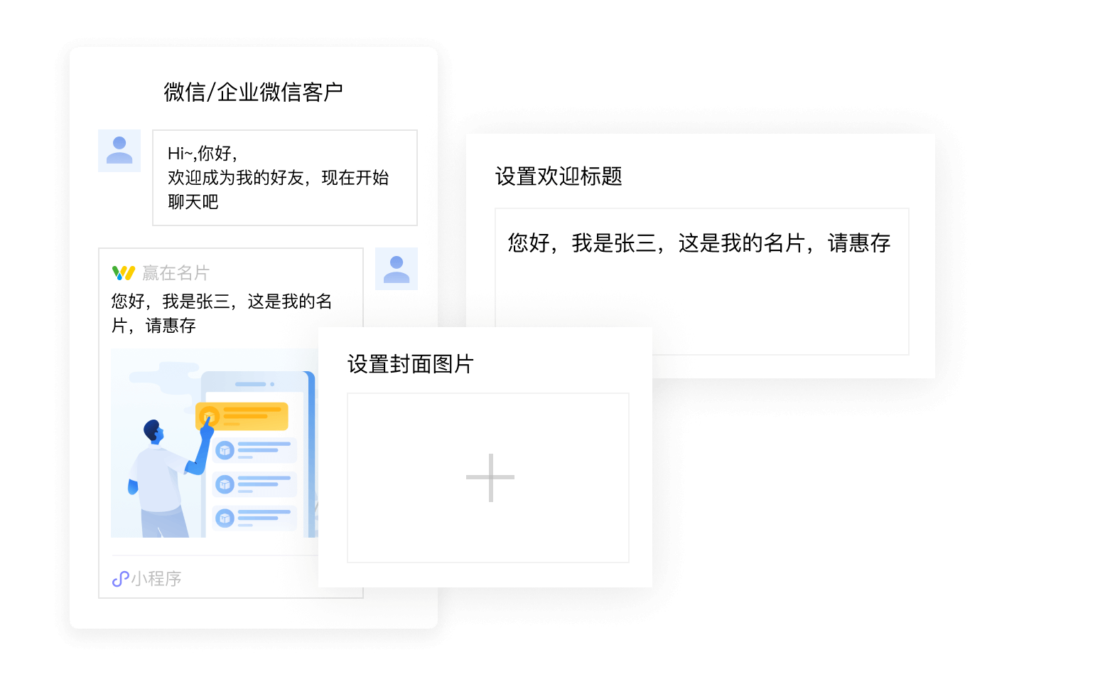 用智能名片展示您的照片/视频、联系方式等信息,并配置企业官网和产品,通过微信社交实现人脉裂变,为企业带来精准流量